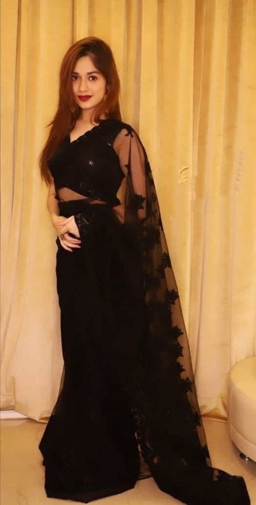 अगर आप ब्लैक में कोई ऑप्शन देख रही है तो आप जन्नत की ये ब्लैक डिजाइनरसाड़ी पहन सकती हैं।