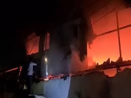 मध्य प्रदेश  बुरहानपुर में कपड़ा फैक्ट्री में लगी आग