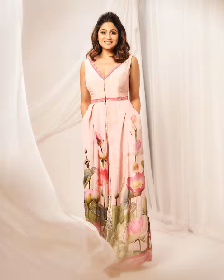 ऑफिस में क्लासी लुक के लिए आप शमिता शेट्टी की वी नेक मैक्सी ड्रेस पहन सकती हैं।