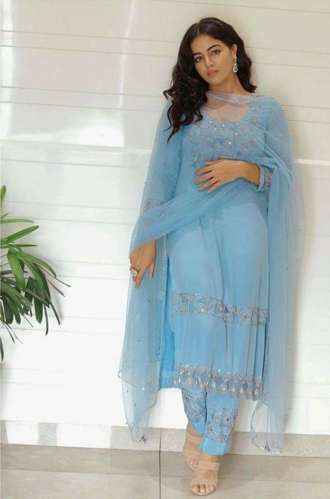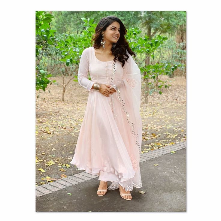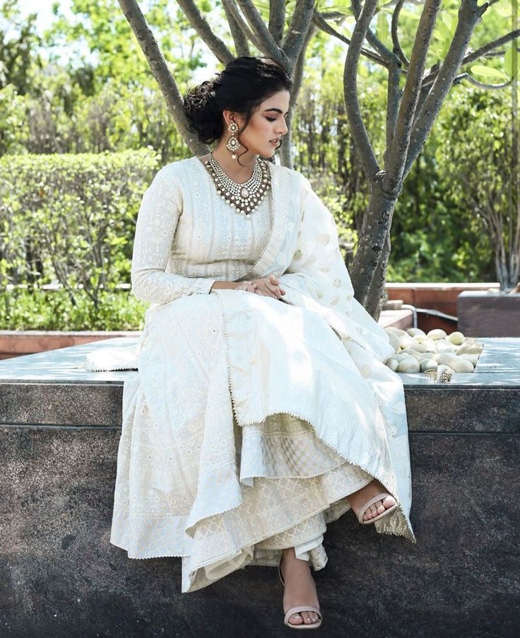एक्ट्रेस का वाइट अनारकली सूट वेडिंग और फंक्शन्स में एक परफेक्ट ऑप्शन हो सकता है।
